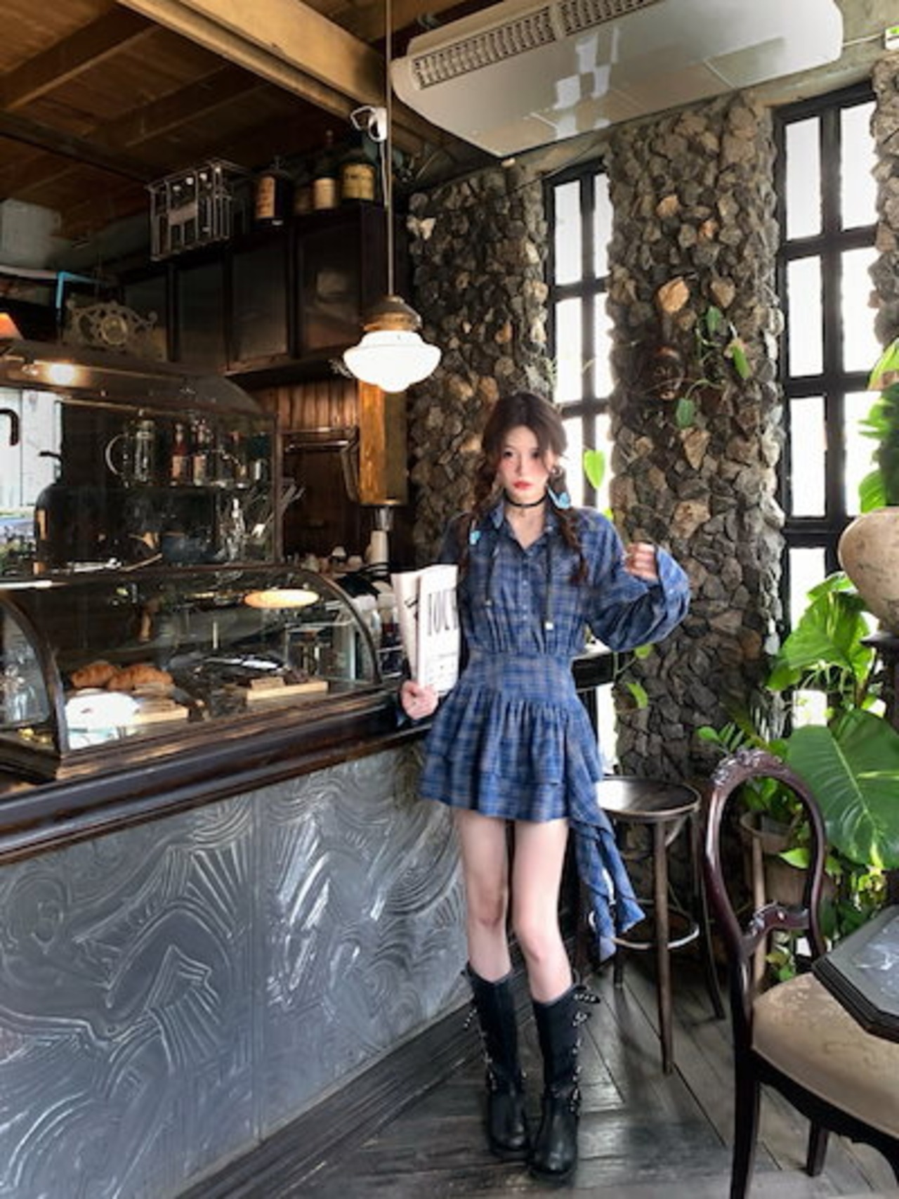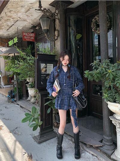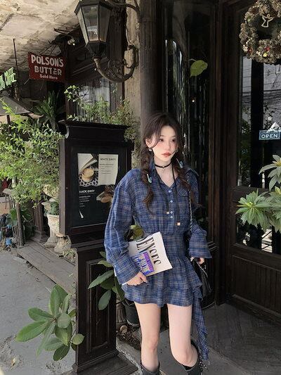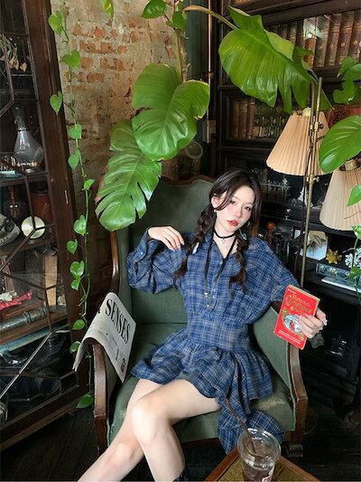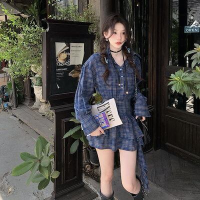 レトロ チェック ワンピース レディース デザイン感 新作ゆったり 韓国ファッション