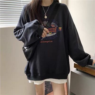 2024 超安?パーカー 秋の新作 ファッション 丸首 Tシャツ ゆったり トップス 通勤 通学