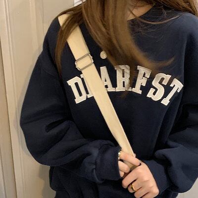 2024超安?パーカー秋の新作刺繍 アルファベット 丸首ファッション Tシャツ ゆったり トップスコート 通勤 通学