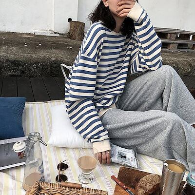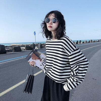 2024秋服超安?パーカー/トレーナー ストライプ 長袖Tシャツ ゆったり トップス 通勤 通学