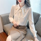 2024秋 フレンチ シンプルシャツ 今っぽシアーシャツ 洋風 シフォンシャツ ファッション トップス