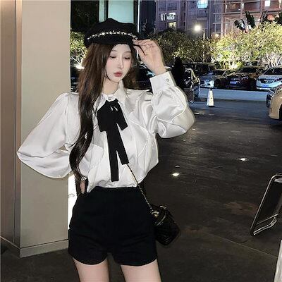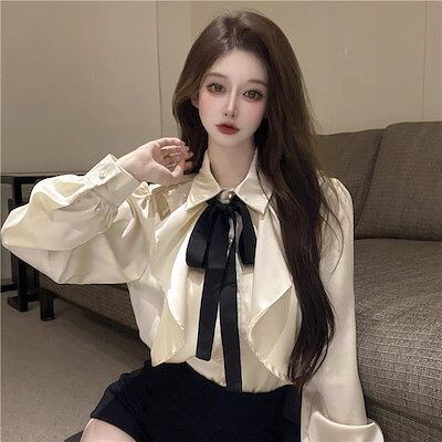 2024早秋 今っぽシアーシャツ 通勤 開襟フリルフレンチ シャツ トップス 上品