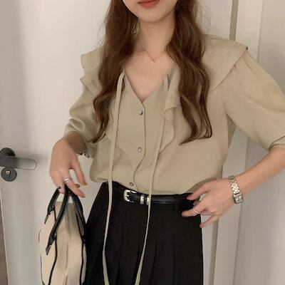 今っぽシアーシャツ 2024早秋新作 フレンチシャツ シフォンブラウス レディース 通勤 ゆったり トップス
