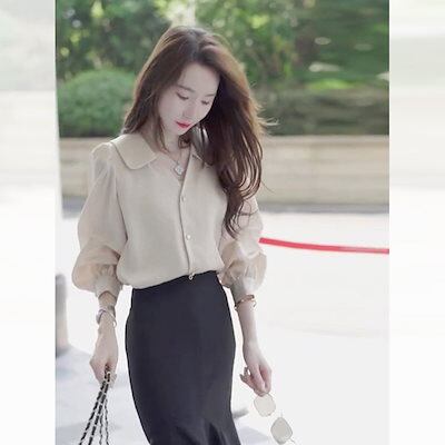 今っぽシアーシャツ 2024年新作 フレンチ ブラウスシフォン長袖 シャツ レディース 通勤 トップス
