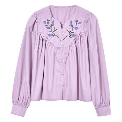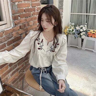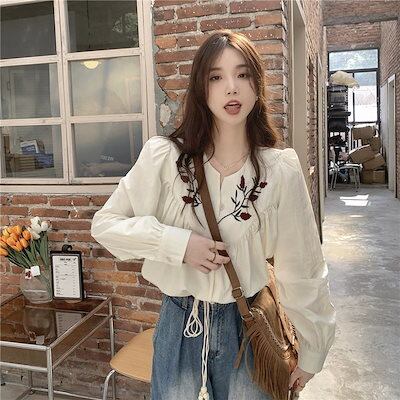 2024秋の新作 今っぽシアーシャツ レトロ 刺繍 ブラウス Tシャツ トップス ゆったりVネック シャツ 通勤 上品