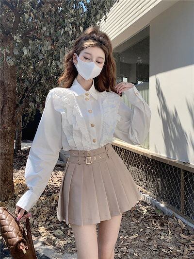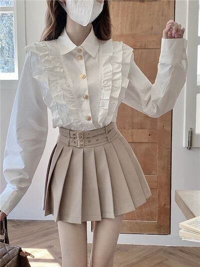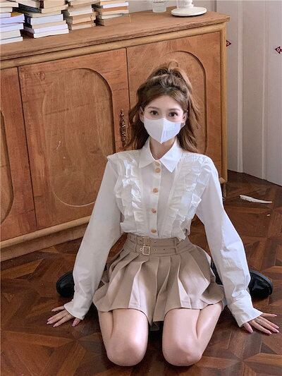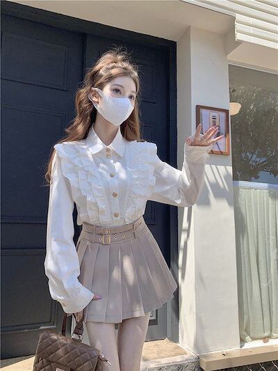 2024秋の新作 今っぽシアーシャツ ブラウス Tシャツフレンチ優しいフリル トップスシャツ 通勤 上品