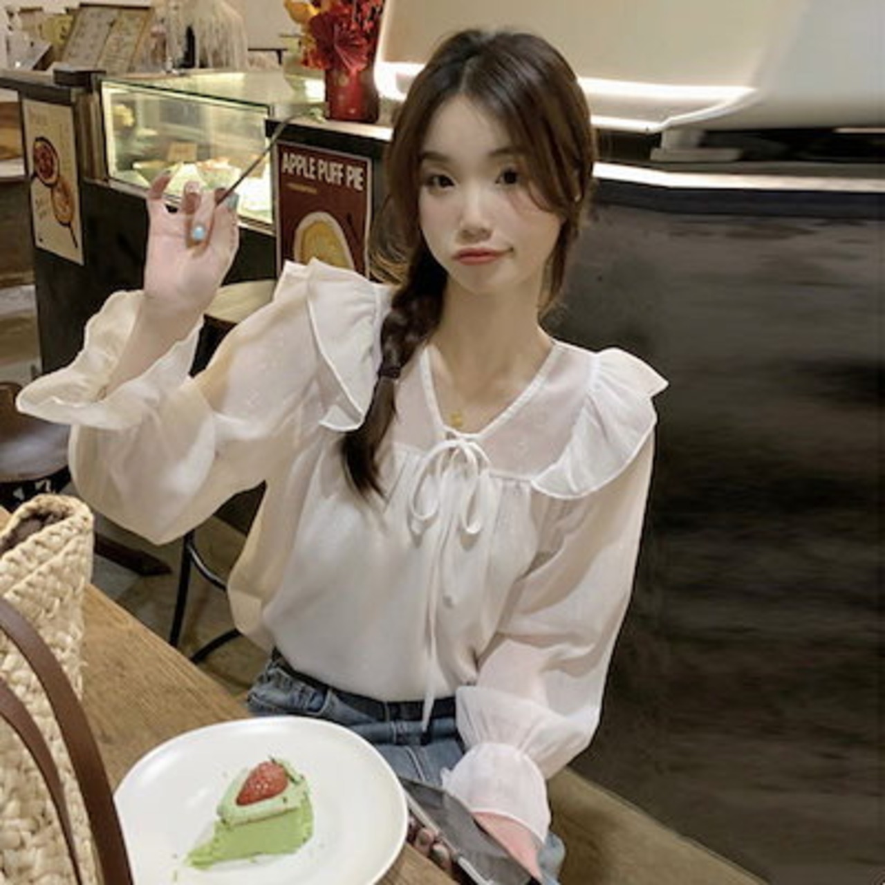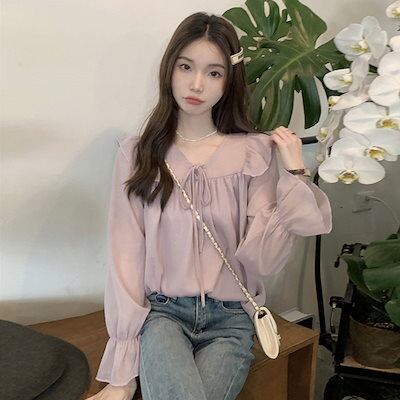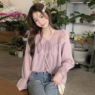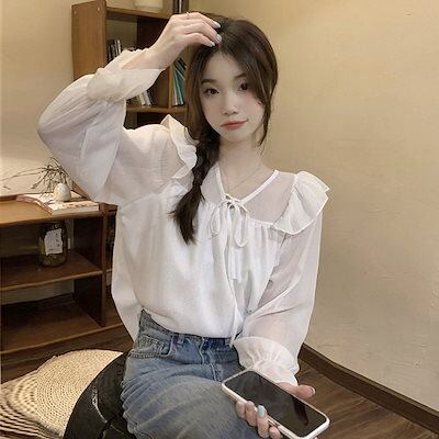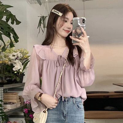人气 新作 今っぽシアーシャツ ブラウス Tシャツ ファッション フリル Vネックシフォントップス シャツ 通勤 上品