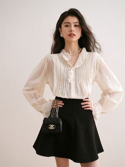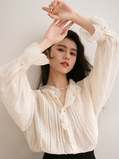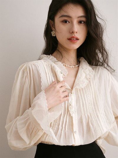 人气 新作 今っぽシアーシャツ フレンチ ブラウス Tシャツ ファッション レース トップス シャツ 通勤 上品
