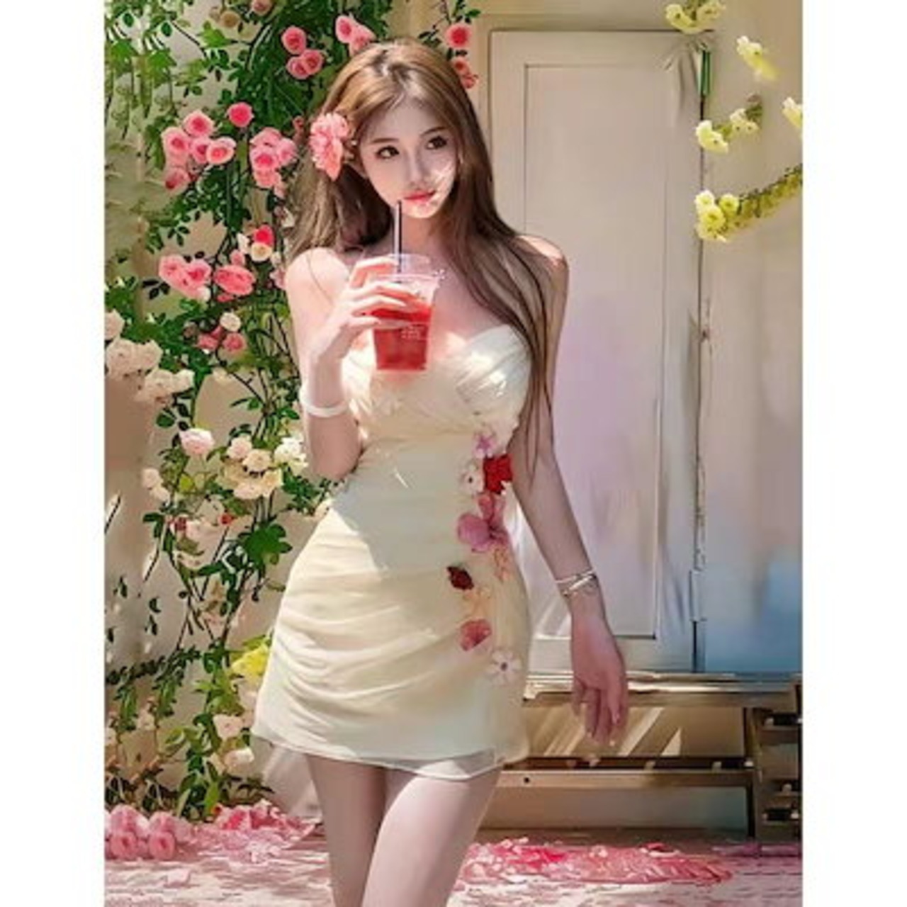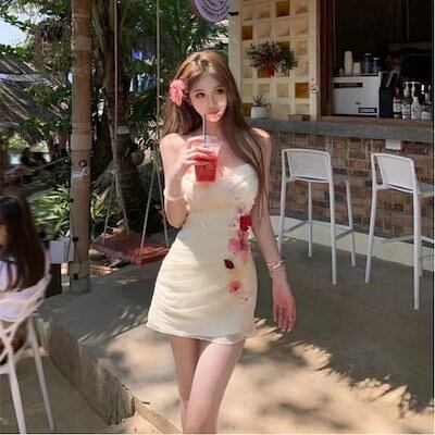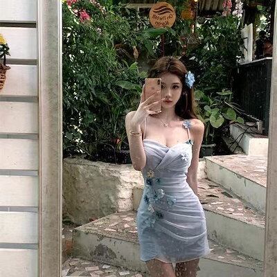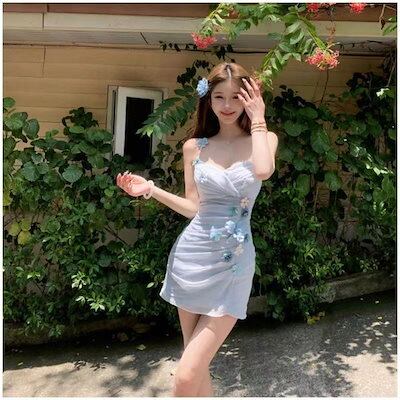 リゾート風立体フラワーワンピース夏の新作甘辛風ウエストを収めたスリムスカート子供