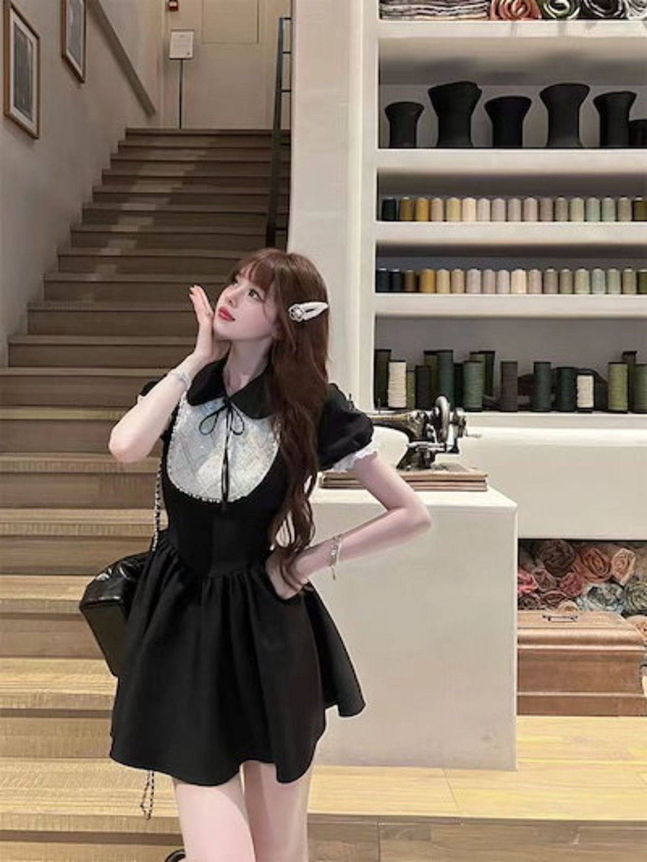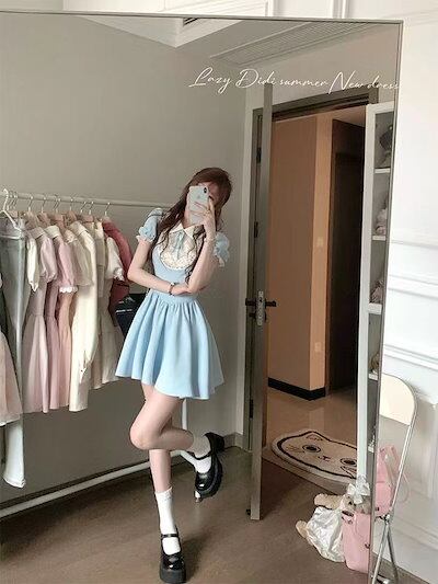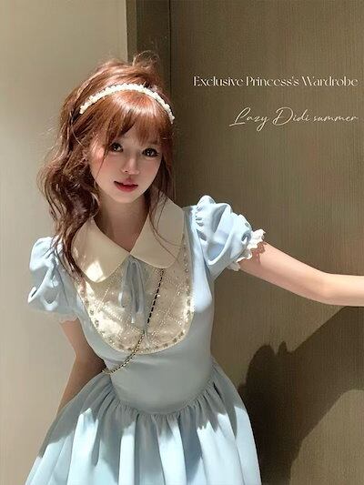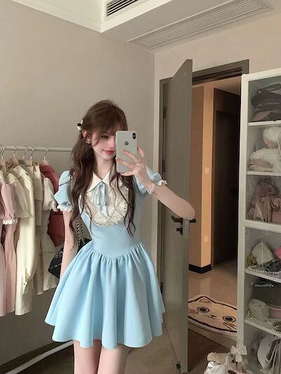 フレンチセレブ令嬢感キルティングポンポンスカートドールネック小柄に甘くウエストを収めて痩せたワンピース女