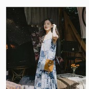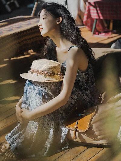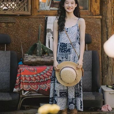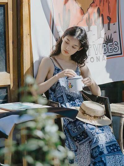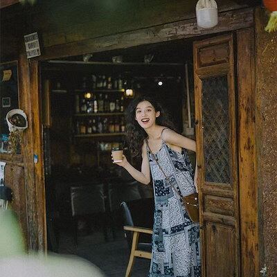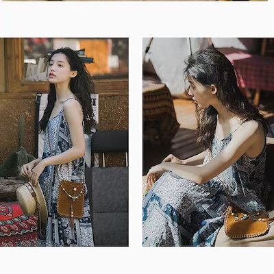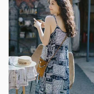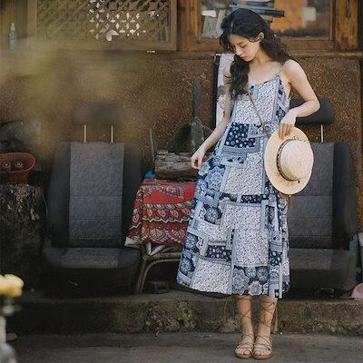 民族風ワンピース旅行リゾート風キャミソールスカートブループリント仙気でゆったり