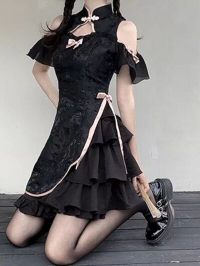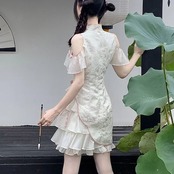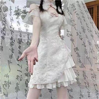 2024夏の新改良チャイナドレス小柄でデザイン感が不規則なa字スカート小衆新中国式ワンピース