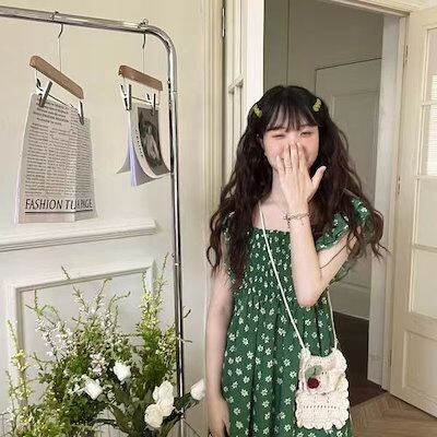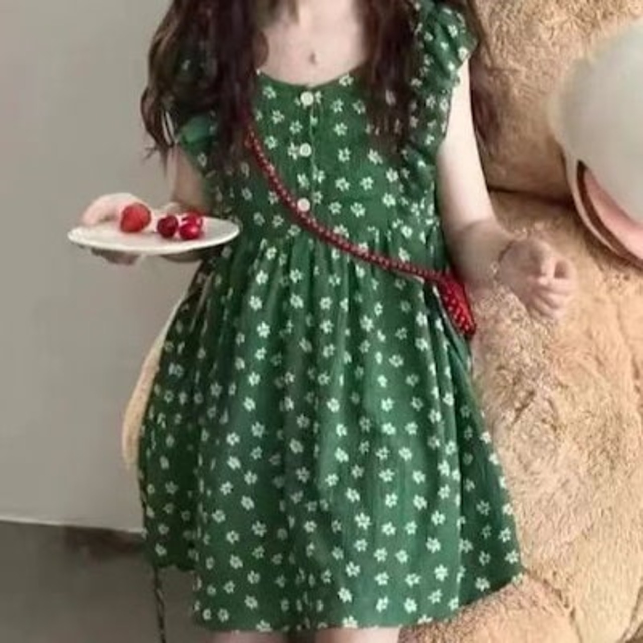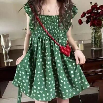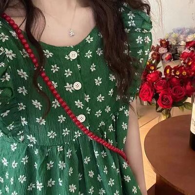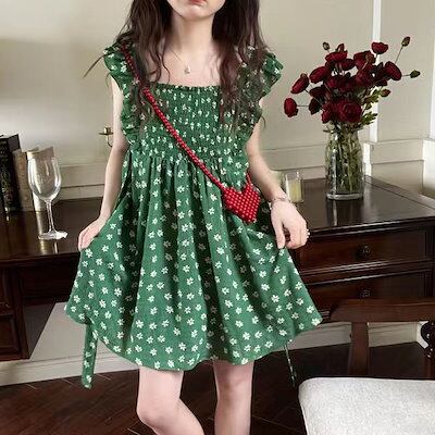 日系アカデミア風夏の2着甘可愛い花柄ワンピース女子ins白ミディアムスカートで小清新