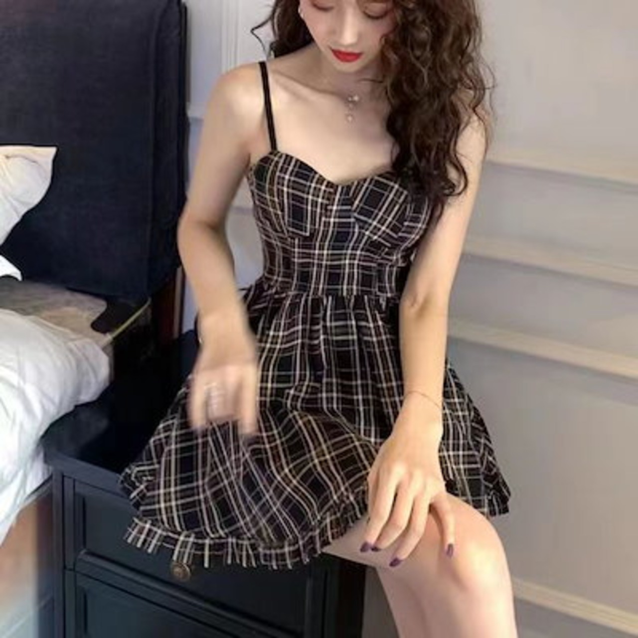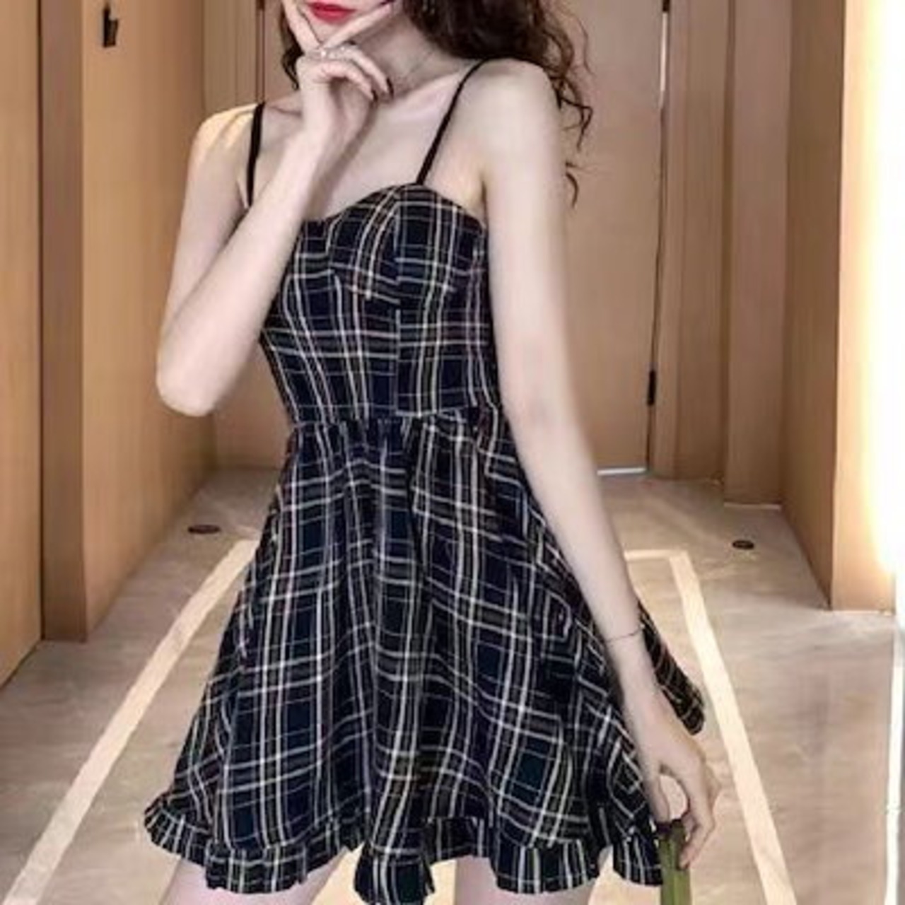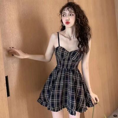 フレンチリゾート風花柄キャミソールポンポンスカート純欲風小柄優しいワンピース