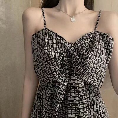 フランスの小人数のデザイン感仙女のキャミソールワンピースをウエストに収めた痩せた気質の女神範2024年新型夏