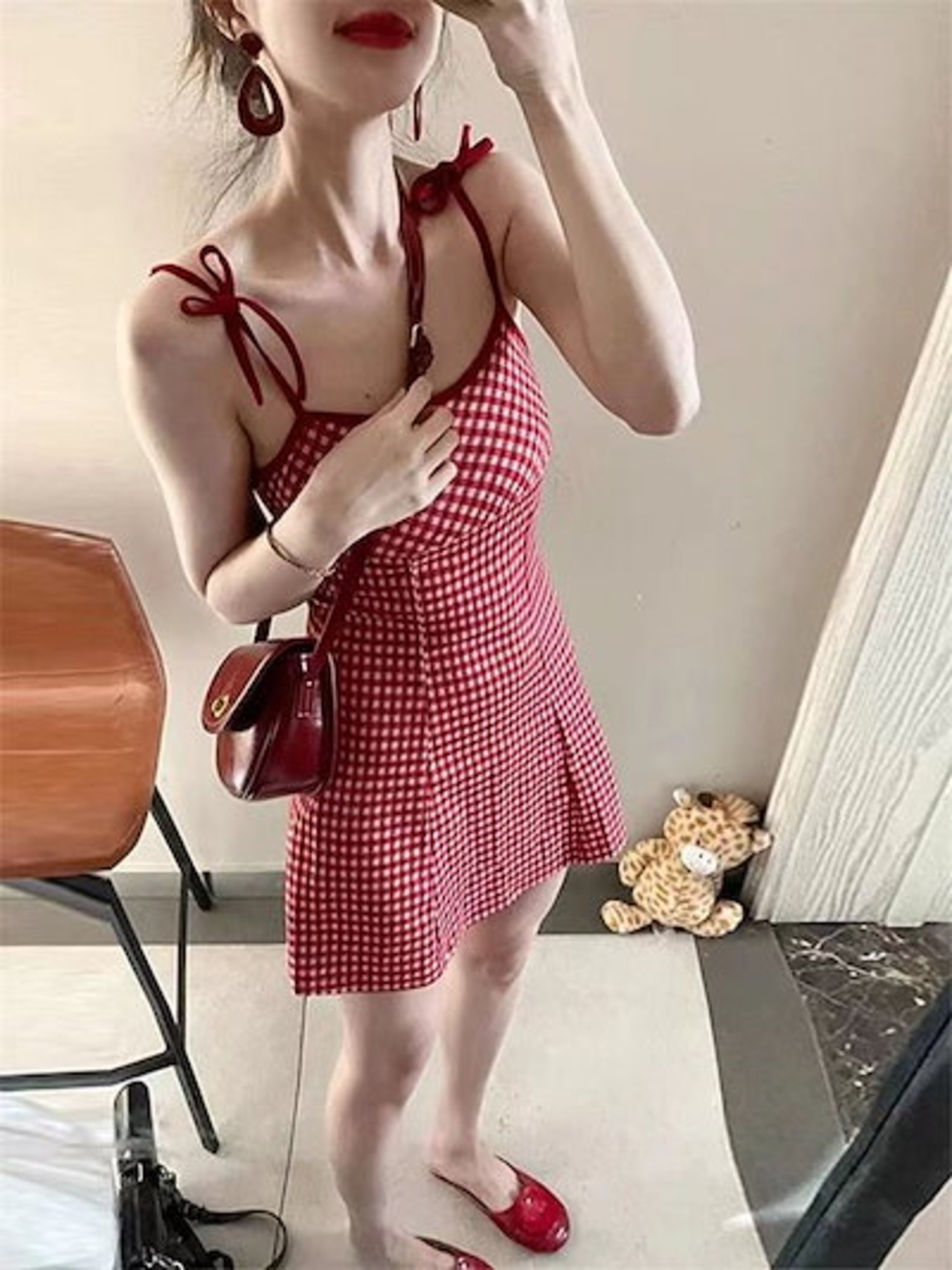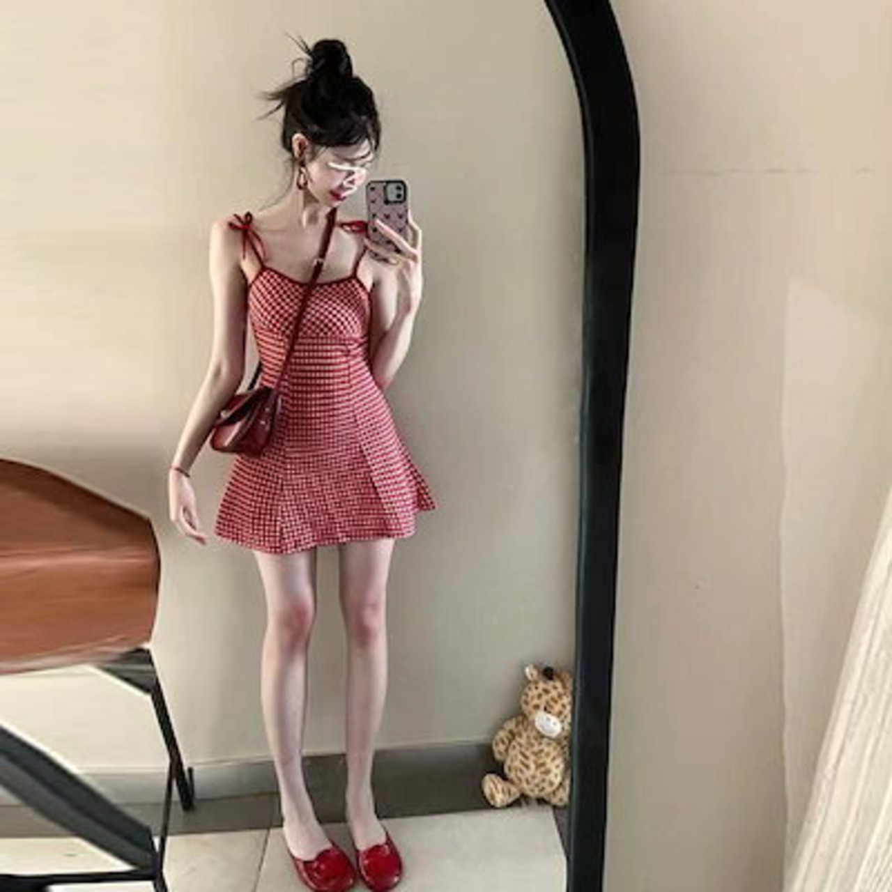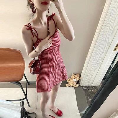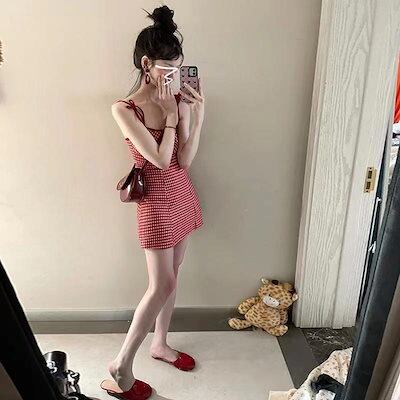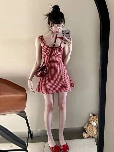 2024春の新作小柄キャミソールワンピース夏の女装ウエストを収める甘くて辛いリゾートスカート