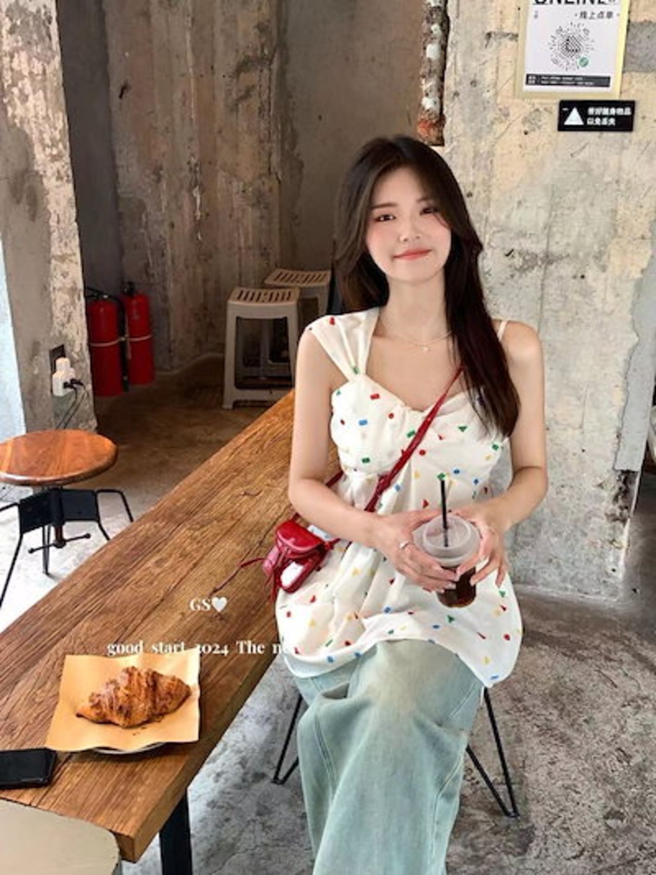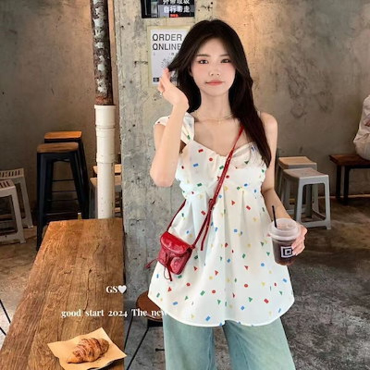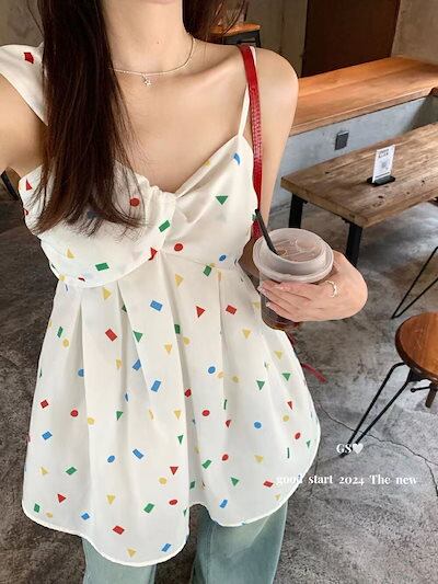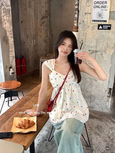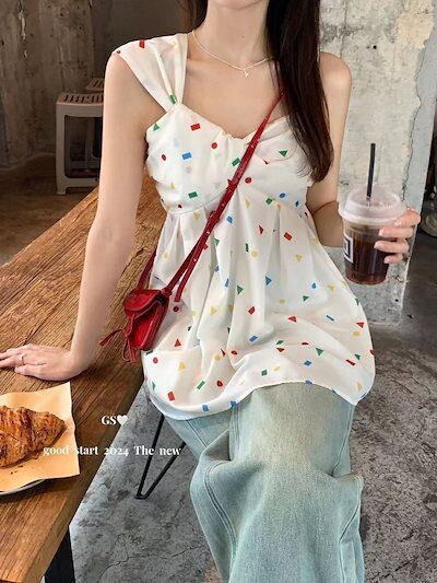 レトロなチェック系ノースリーブシャツレディース夏2024新型減齢ゆったりファッション百合ミニトップスブーム