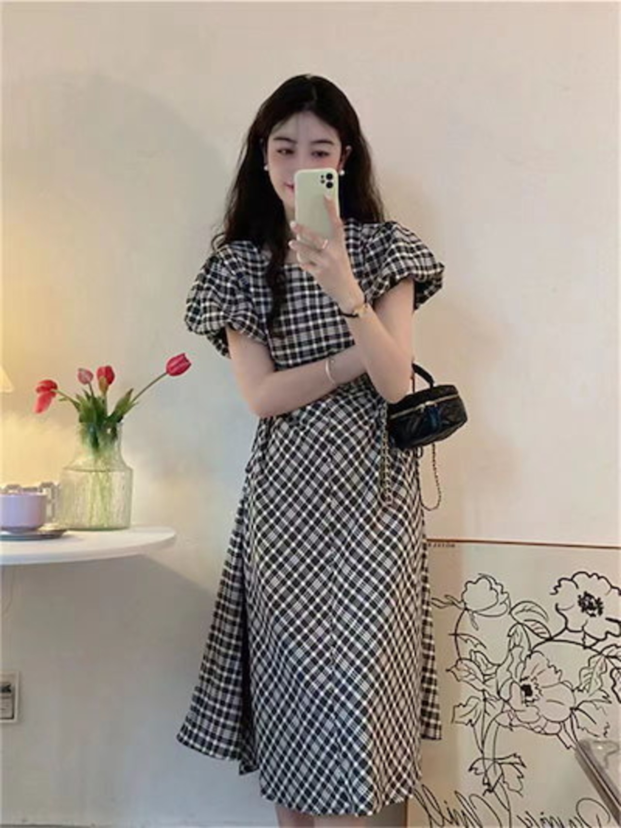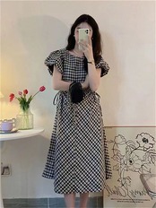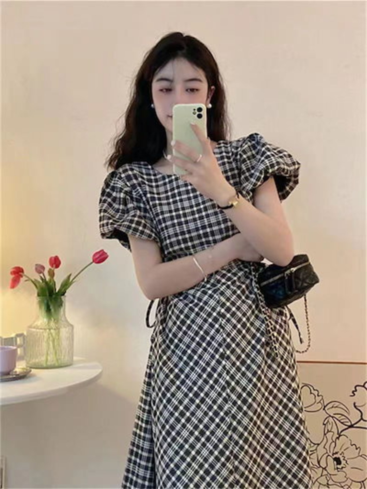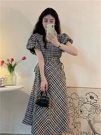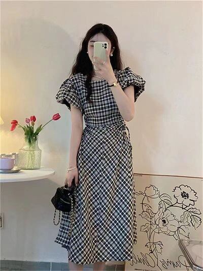 2024夏フレンチ高級感気質着やせカジュアルワンピース小人数デザインレトロウエストチェックスカート女