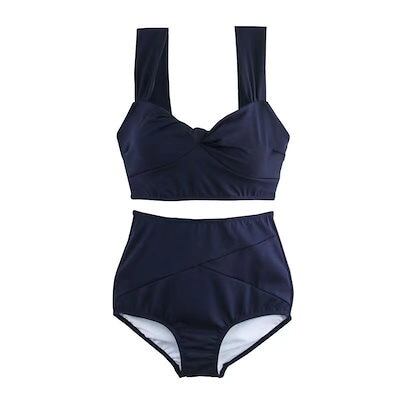 2024新型韓国版シンプルビキニ小胸を集めたハイウエストで腹部を隠して痩せた分体を見せる控えめ温泉水着女
