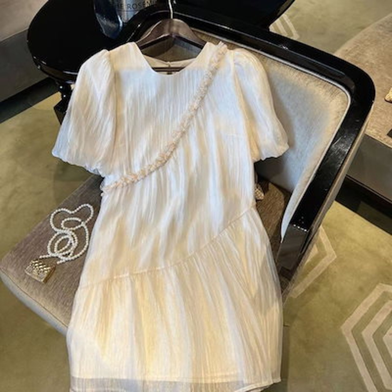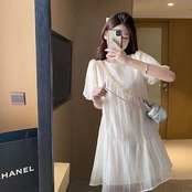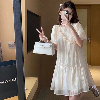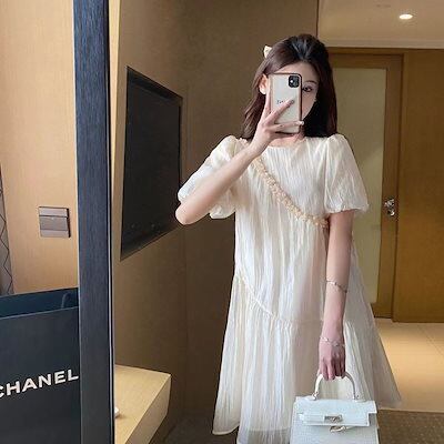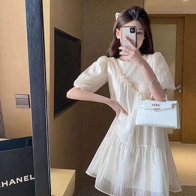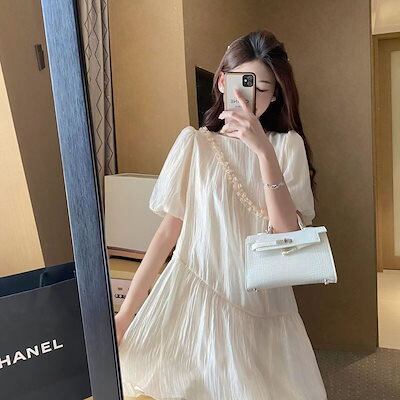 フレンチシフォンワンピース夏2024年新作婦人服小柄でゆったりとした着やせパフスリーブのおしゃれスカート