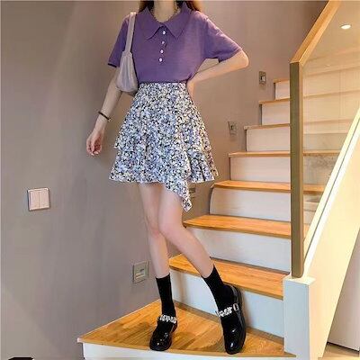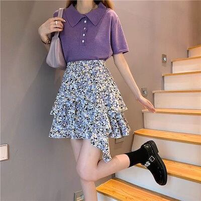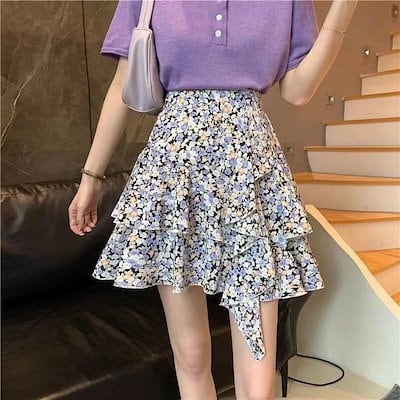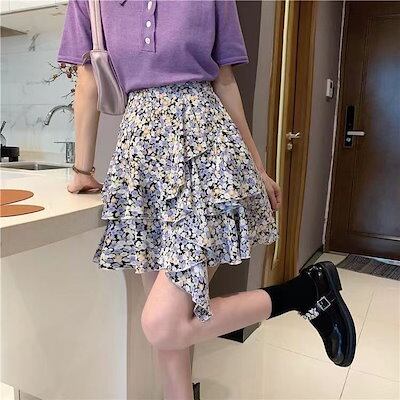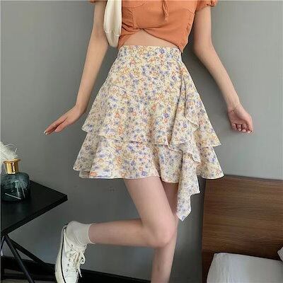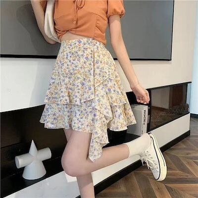 デザイン感のある小衆不規則な半身スカート春服2024新女性小清新小花柄ハイウエストA字ショートスカート