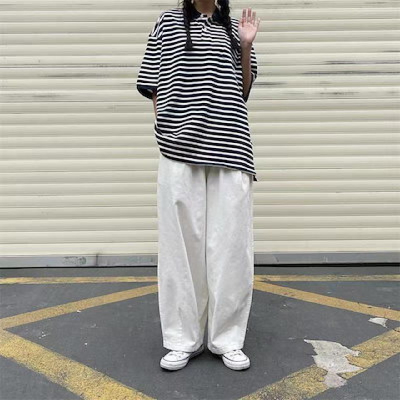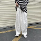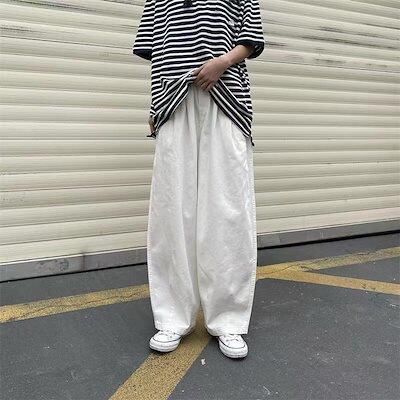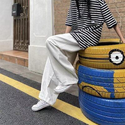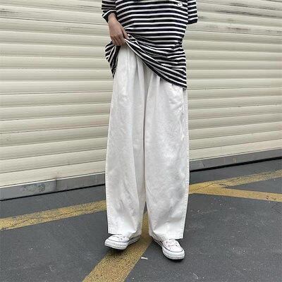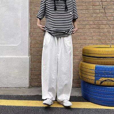 テーパードパンツ大判コットンホワイトストレートワイドパンツ女子学生春夏ハイウエストゆったり着やせカジュアルパンツブーム