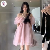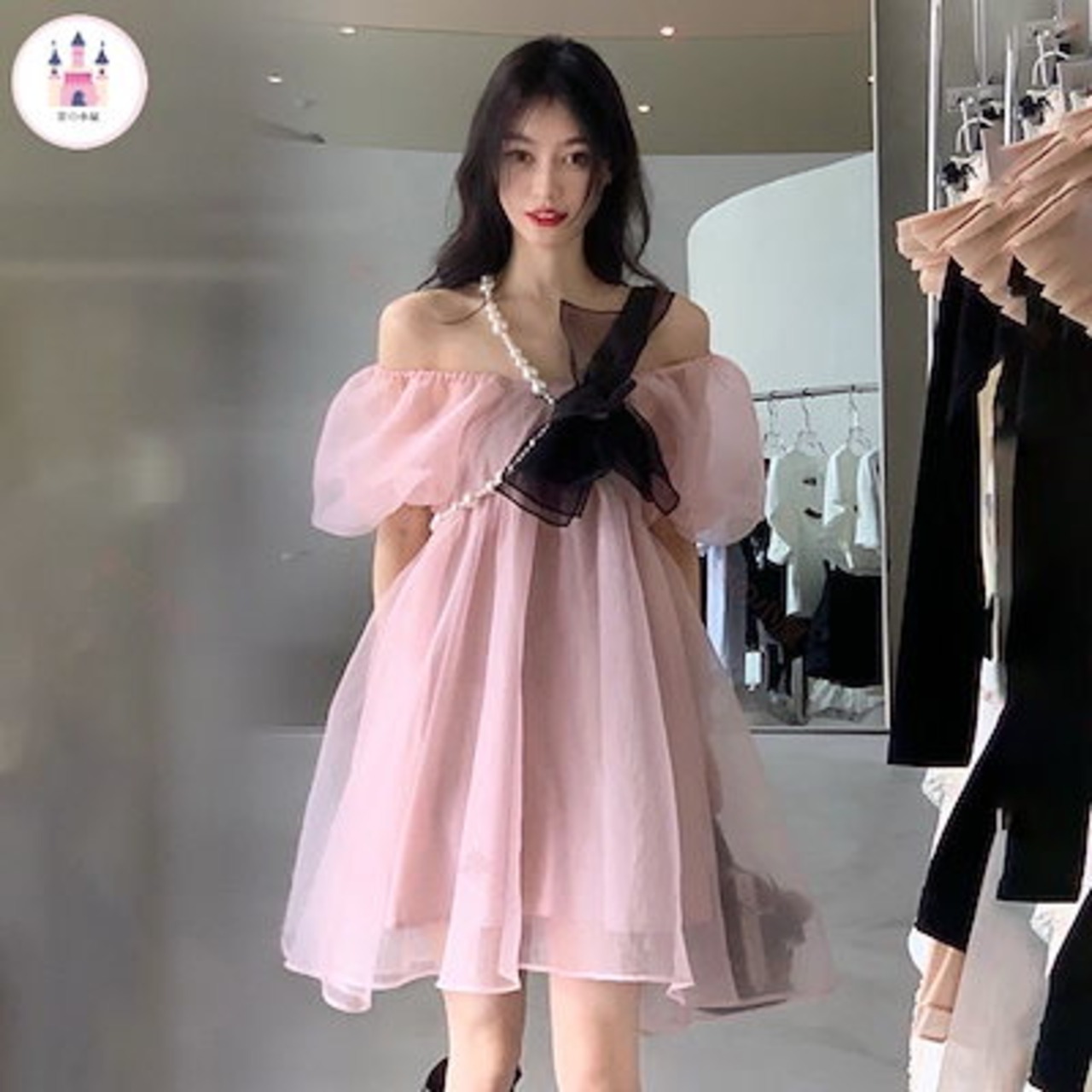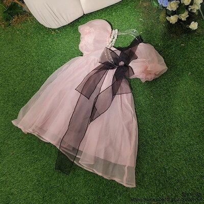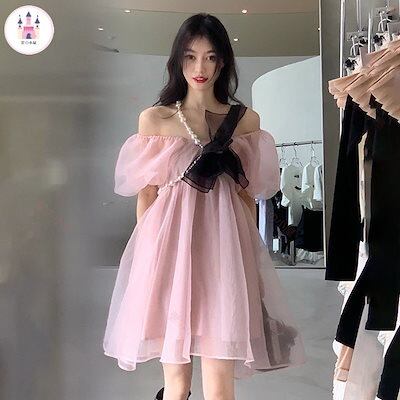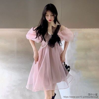 フレンチ純欲優しい風オーガンザワンピース子供夏小柄ゆったり着やせパフスリーブポンポンスカート