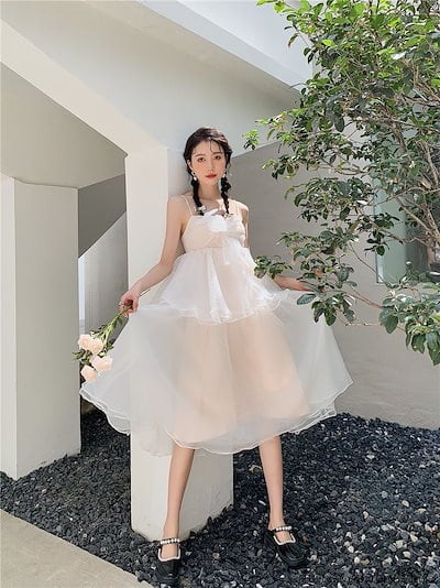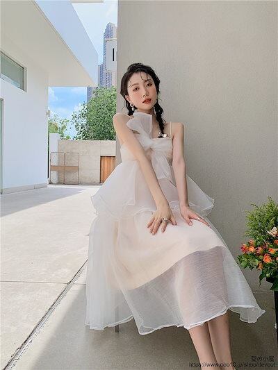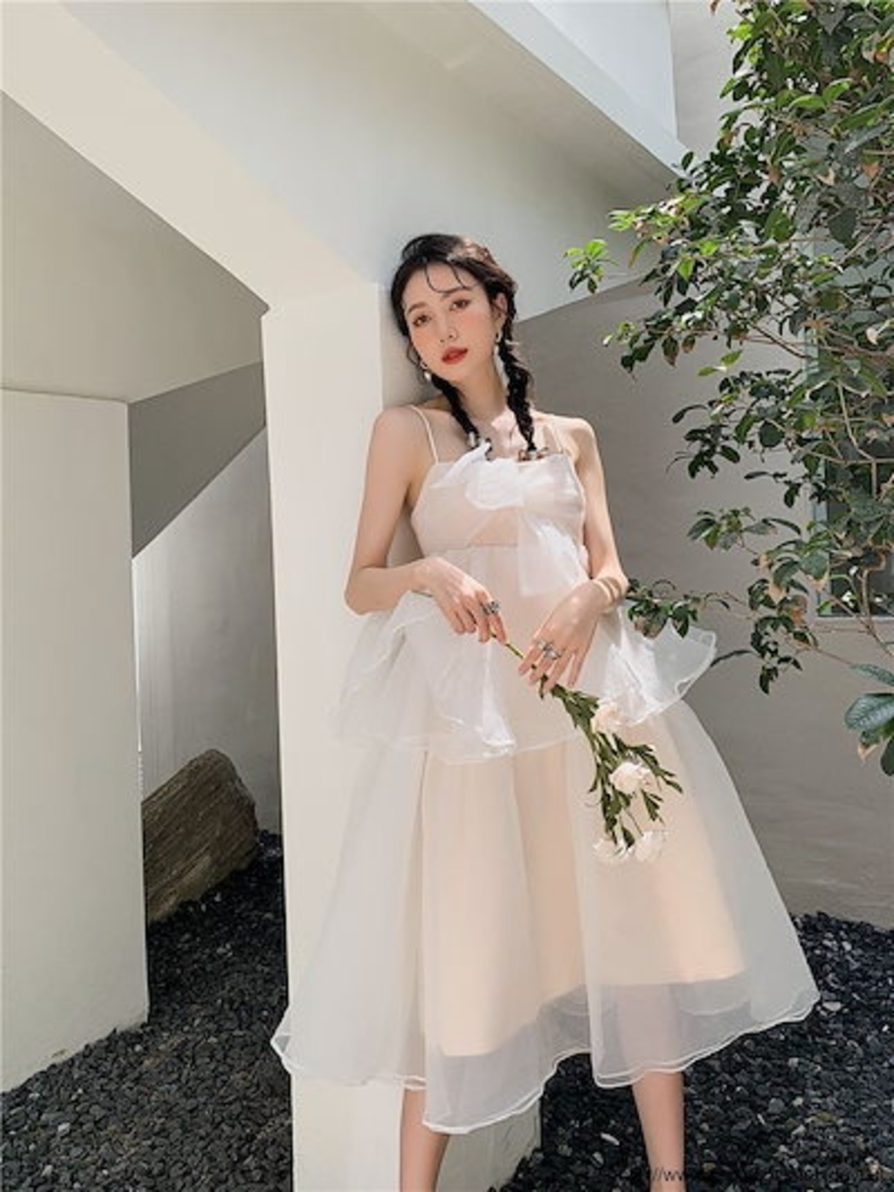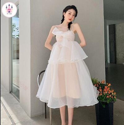 キャミソールワンピースの女性デザイン感小衆森系甘いウエディングドレスドレスパーティー日常着られるメッシュスカート
