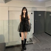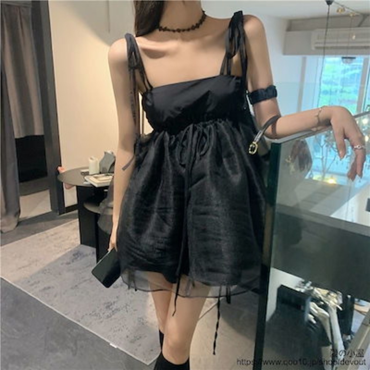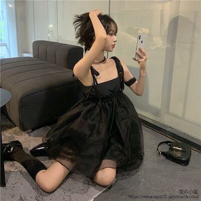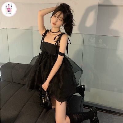 ダークで小人数のキャミソールワンピースレトロな雰囲気ハイウエストで着痩せウエスト見せフレンチa字ショートスカート仙女夏