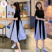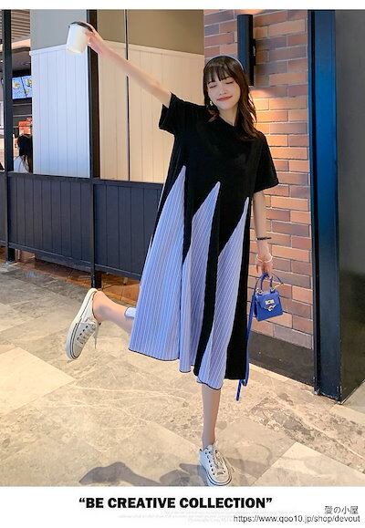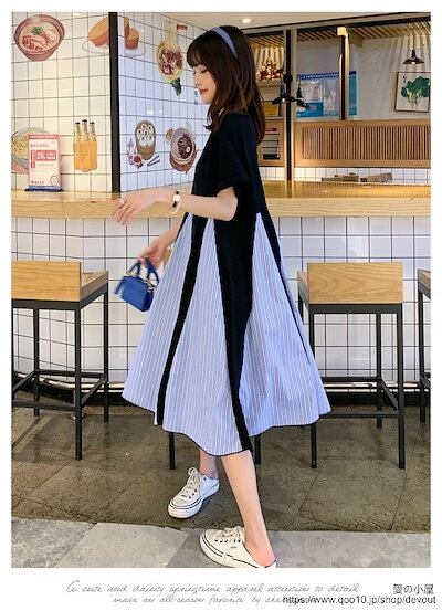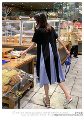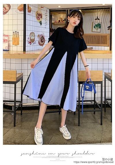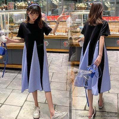 ドレス大きいサイズのマタニティーストライプゆったり減齢甘継ぎ目ミディアム丈マタニティースカート痩せ見え快適マタニティーワンピース