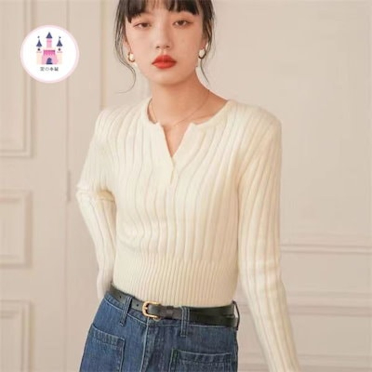 2024秋冬新作純色セーターゆったりけだるい女韓国版コーデュロイトップス女潮丸首ニット