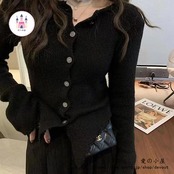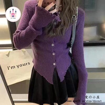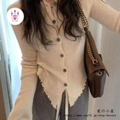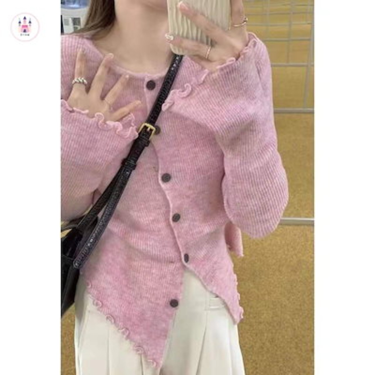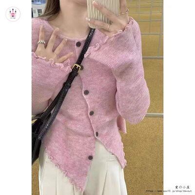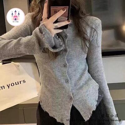 韓国版不規則ニットボトムブラウス秋冬の新デザイン感小衆修身で痩せ見えウエストインナートップス