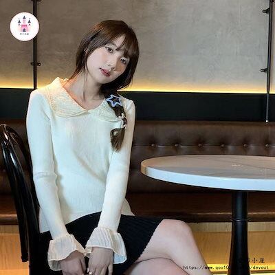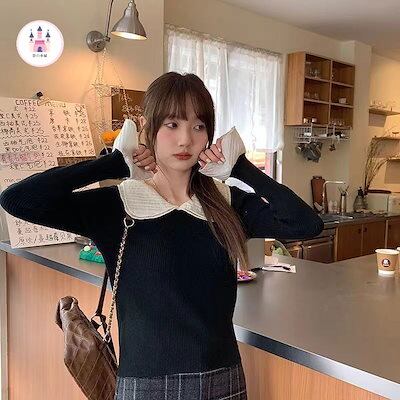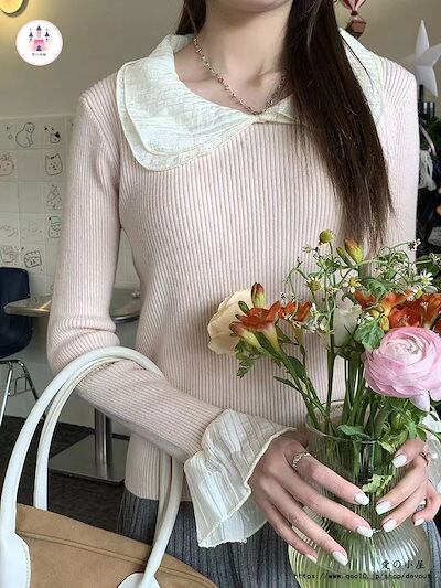 韓国系甘さ百合スリム見えドールネックプルオーバー2024春の新デザイン感フレアスリーブTシャツトップス