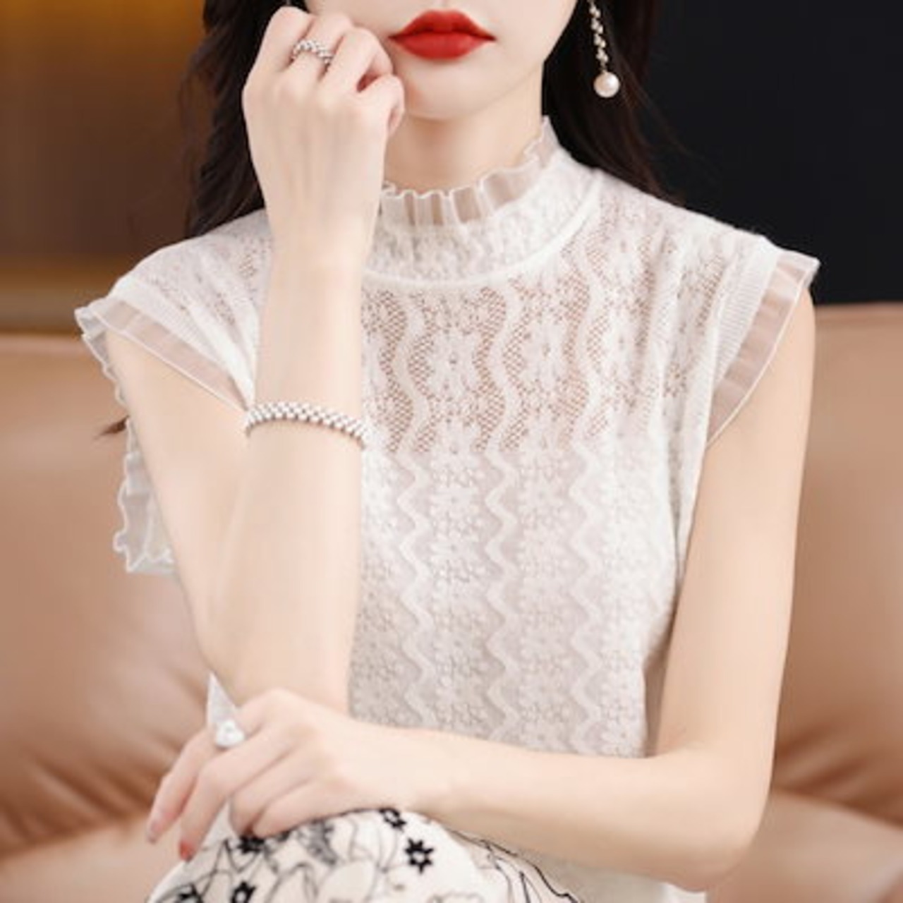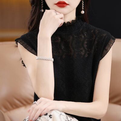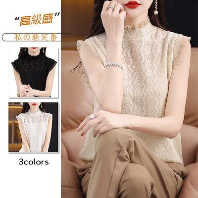 2024新作 ノースリーブ シンプル インナー 透かし彫りトップス ニット TシャツTシャツカットソー おしゃれ
