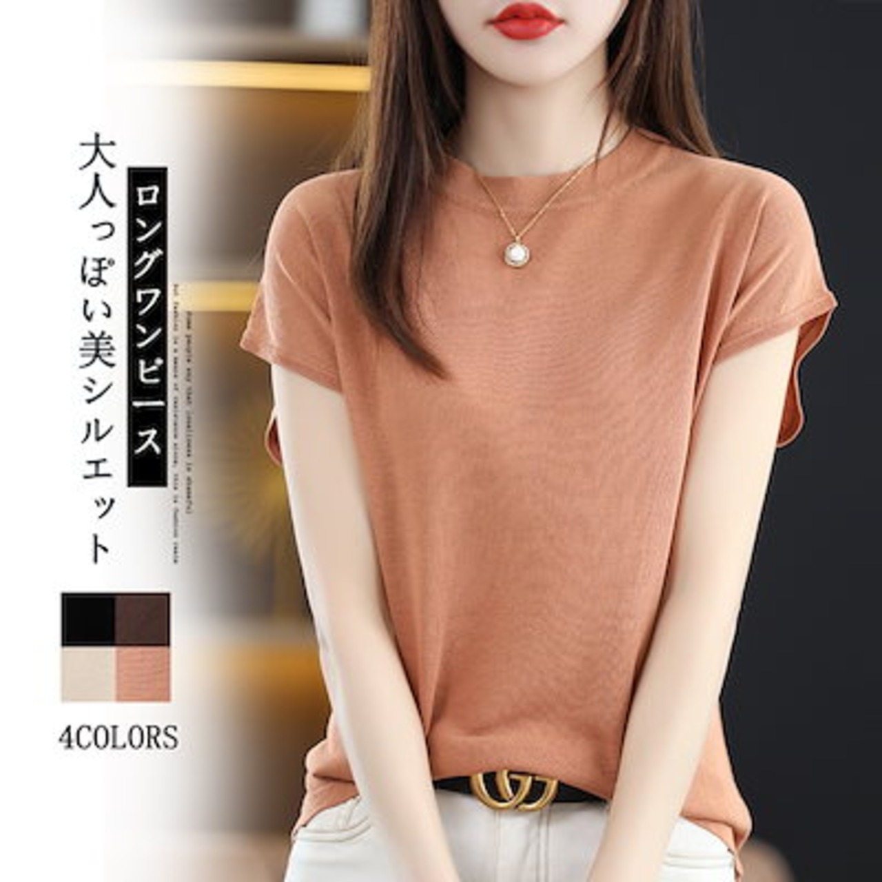 【2枚購入で 2oo円OFF!】2024新作 シンプル インナー 気質 トップス ニット TシャツTシャツカットソー 半袖