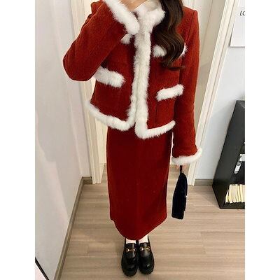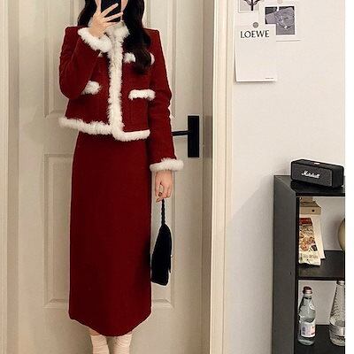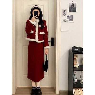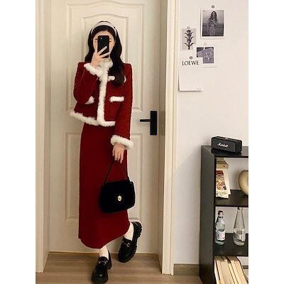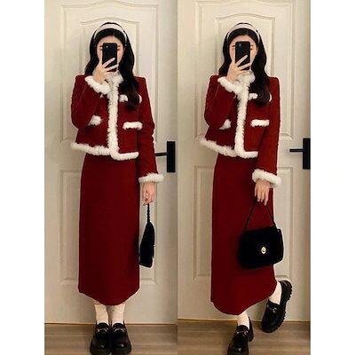 2024秋冬クリスマスセット レッド二点セット運動セットおしゃれ百掛け長袖無地デザイン感ニッチカジュアルスウェットズボン