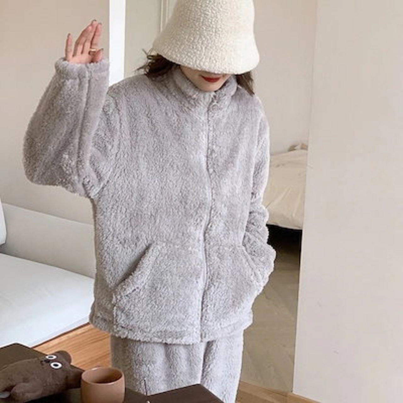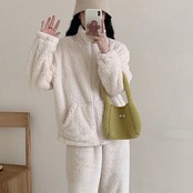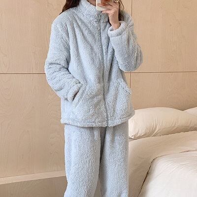 可愛い 柔らかい おしゃれ スイート ウォーム コーラルフリース パジャマ カジュアル フランネル ゆったり ホームウェア