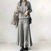 セットアップ レディース 長袖 セーター プリーツスカート ニット スカートセット ギャザー 秋冬 二点セット 無地
