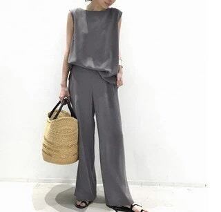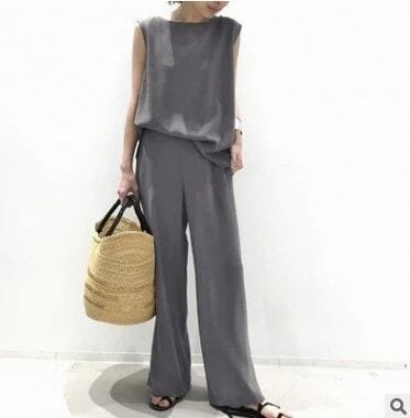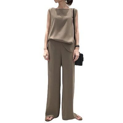 涼しく楽ちんセットアップ上下2枚の日本のおしゃれなゆったりしたスラックス