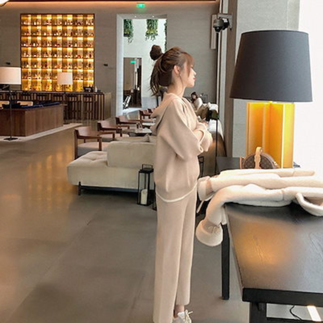 初秋セーターセットアップセーターカーディガンワイドパンツ秋冬韓国ファッション気質フード付きニットスウェットカジュアル