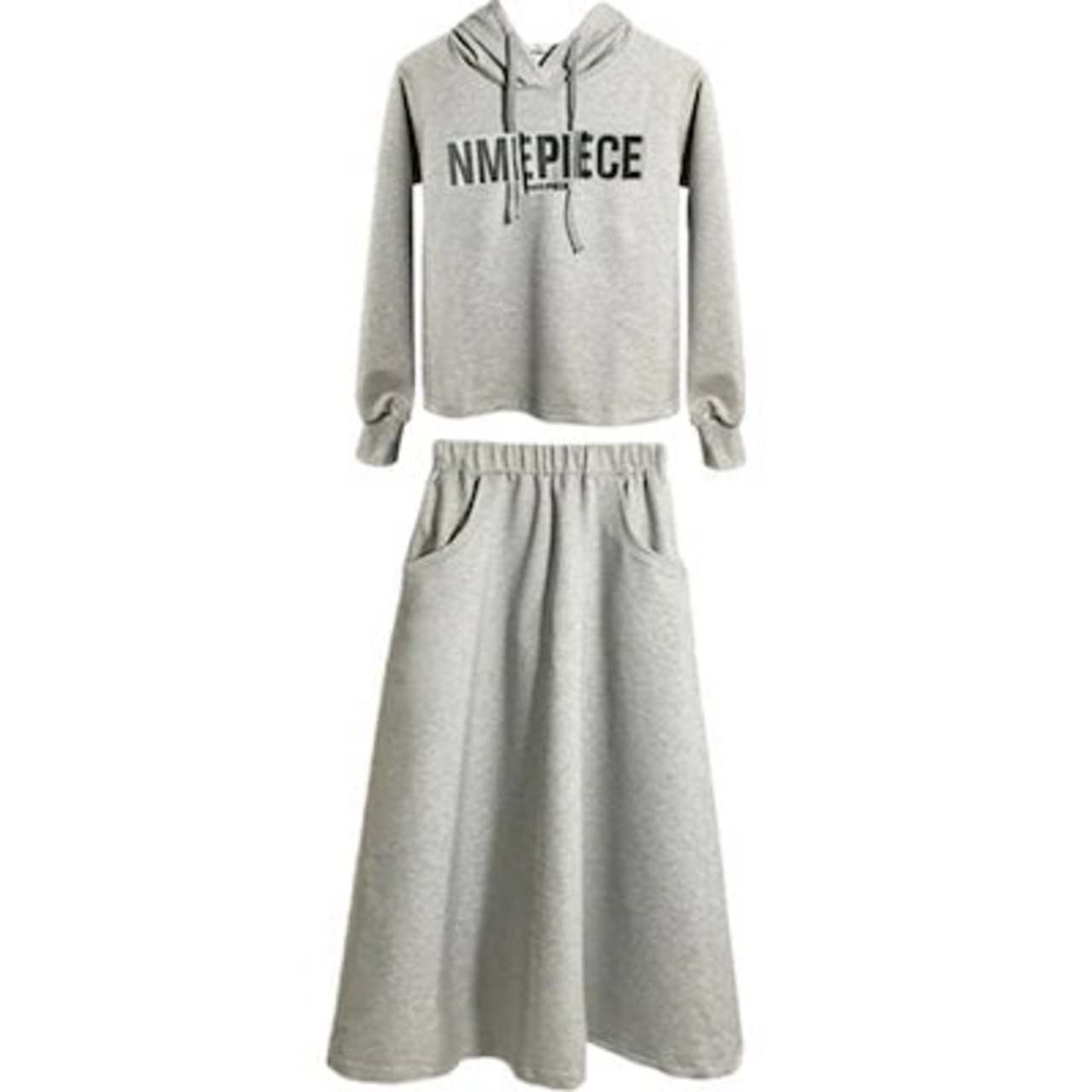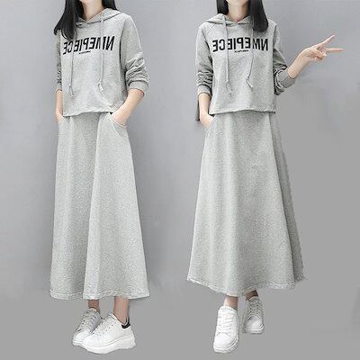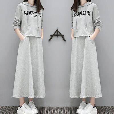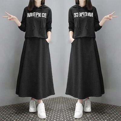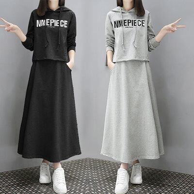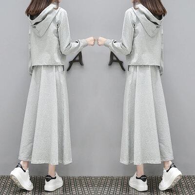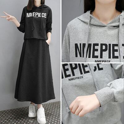 韓国ファッションセットアップフード付きスウェットスカート長袖スウェット通勤2点セットアイスシルクuvカット