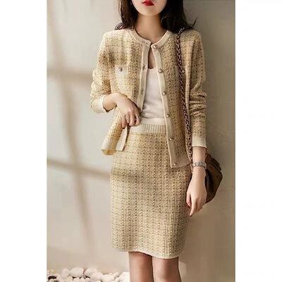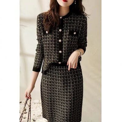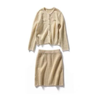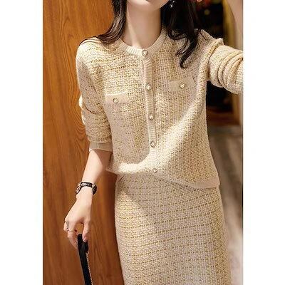 韓国ファッション長袖ニットカーディガンセットアップスカートセーターセットアップ通勤OL