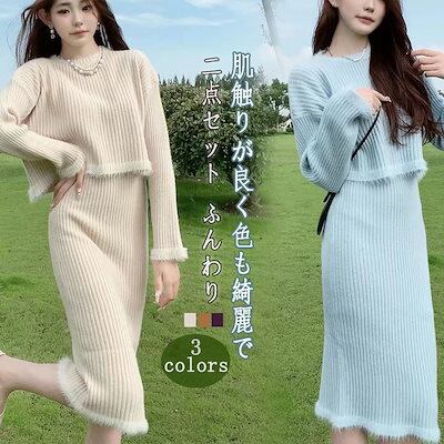 秋冬韓国ファッション 秋冬セーターセット厚手保温アップセーターカーディガンスカート気質スカート冬ウォームツイストニット
