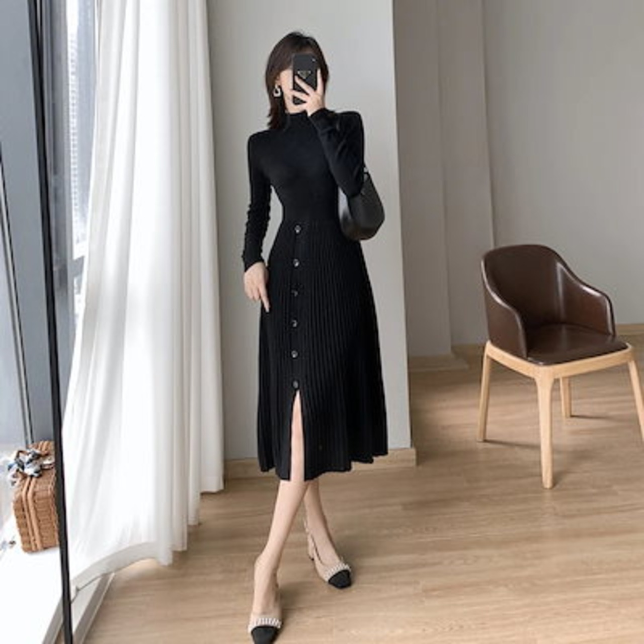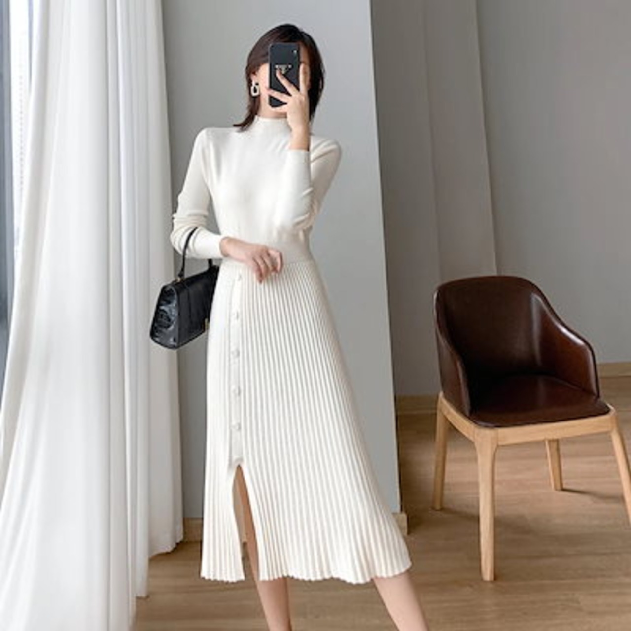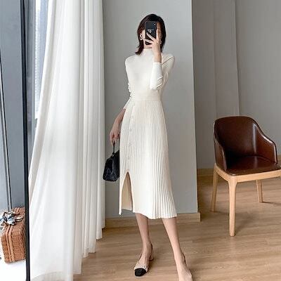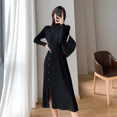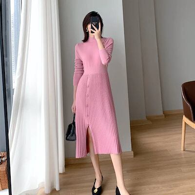 のワンピース2023春 ニュースタイル 着痩せ おしゃれ 流行り ニットワンピース ロング丈 高級感韓国ファッション