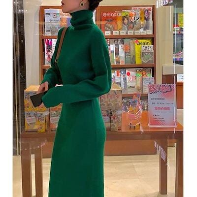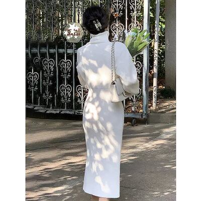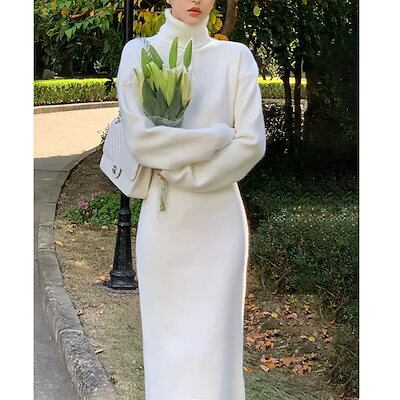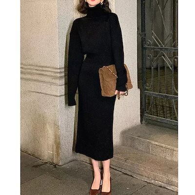 のワンピース春 ニュースタイル ロング丈 タートルネック ニットワンピース 気質 高級感 ニットワンピース 着痩せ韓国ファッション
