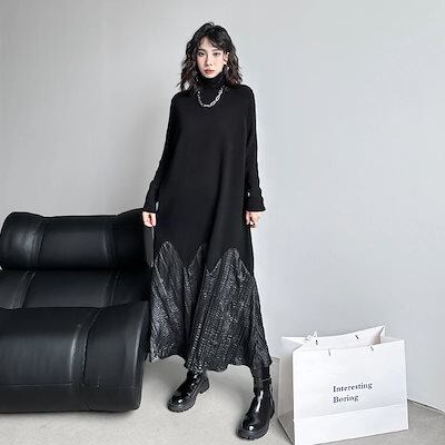 新作 おしゃれ 高級感 ニットワンピース 切り替え 着痩せ ロングワンピース ワンピース 秋冬 百掛け