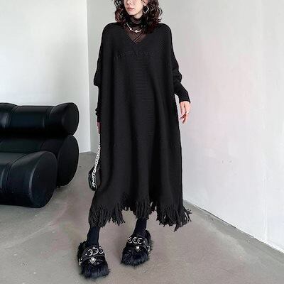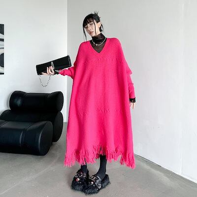 新作 おしゃれ オシャレ ワンピース ロングワンピース ニットワンピース 気質 高級感 百掛け Vネック 大きめサイズ ワンピース