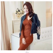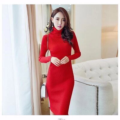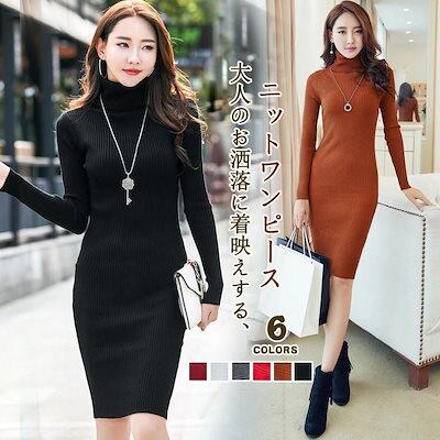 【2枚購入で 3oo円OFF!】新作 おしゃれ 気質 ワンピース ハイネック 長袖 修身 ニットワンピース 通勤