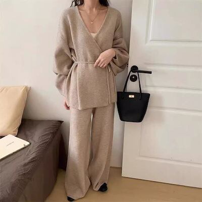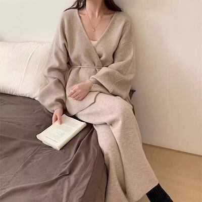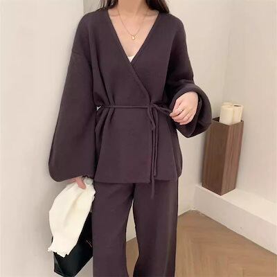 2024秋冬新作 ドレス ニットレトロスーツ カジュアル セットアップ 韓国風 ニット セットアップ レディース人気なリプニット