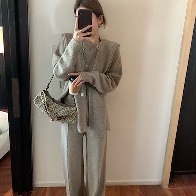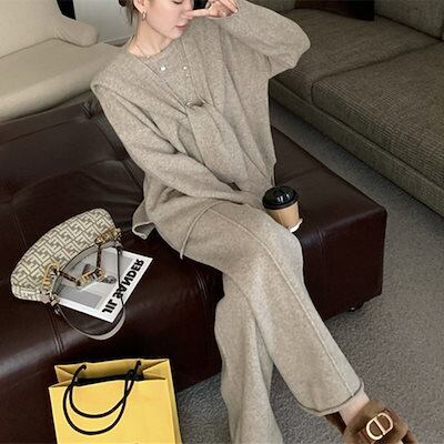 2024新作 ドレス ニットレトロスーツ カジュアル セットアップ 韓国風 ニット セットアップ レディース人気なリプニット